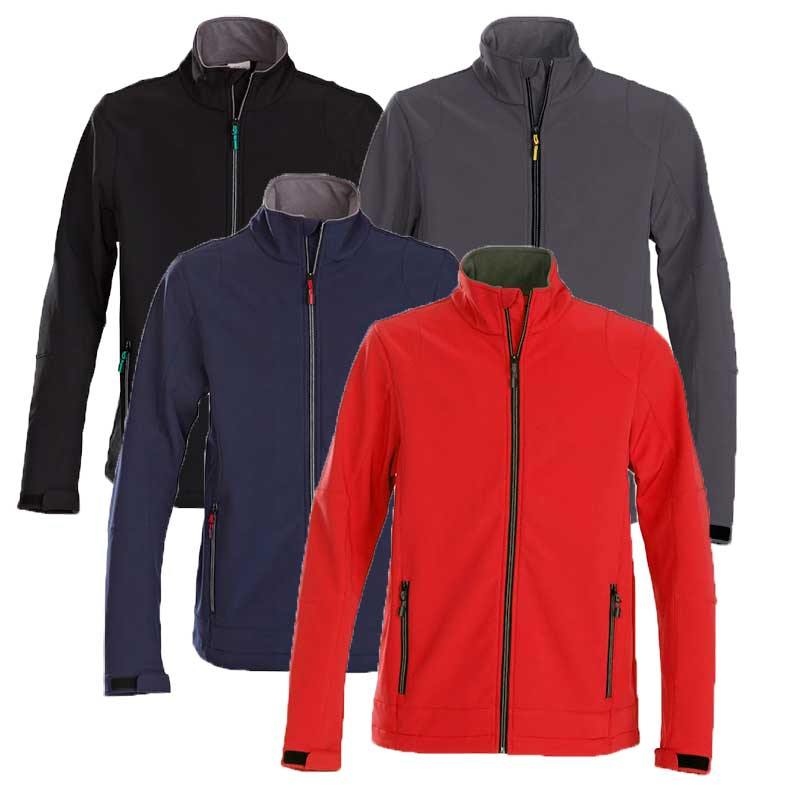 Unisex softshell jacket with two-coloured zipper at front and pockets. Adjustable cuffs with Velcro and drawstring at hem. Nylon lining inside the sleeves.