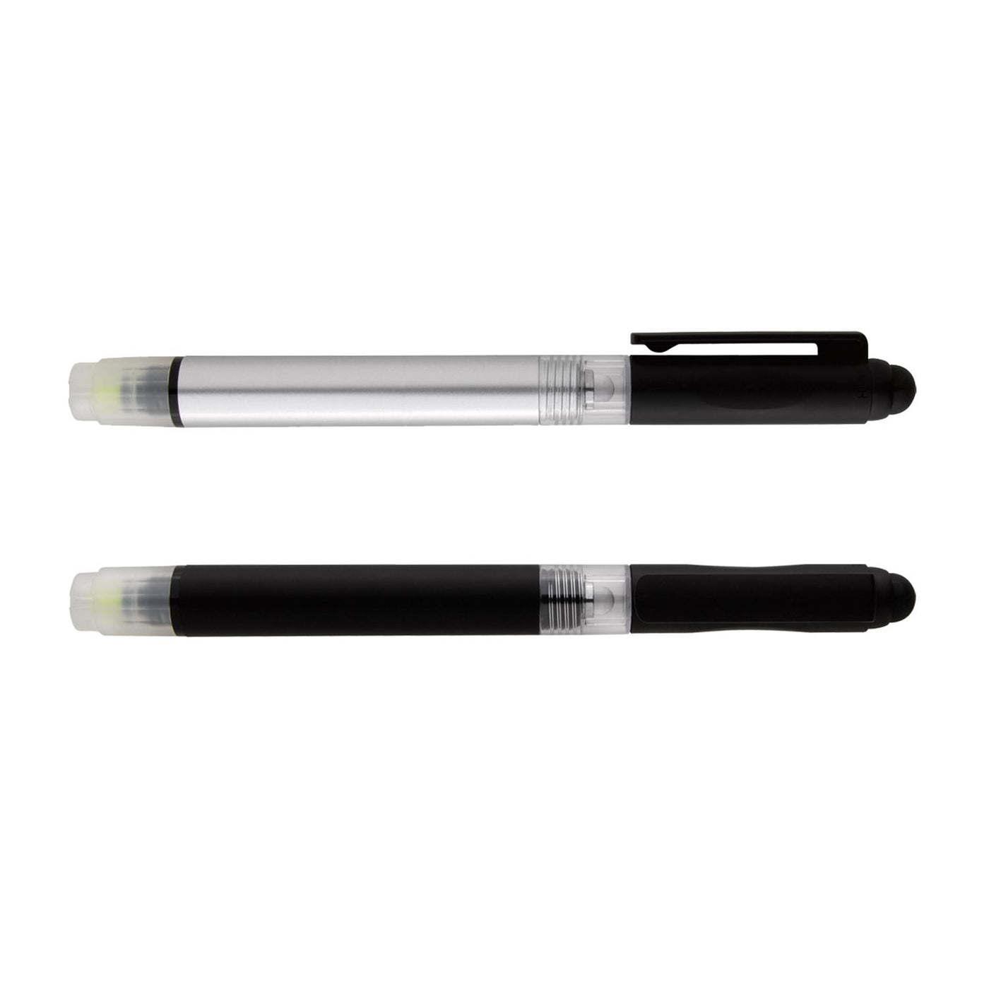 Click action 3 in 1 aluminium stylus mobile phone stand metal pen brushed metallic barrel with 5 stylish shiny silver chrome rings a stylus for touch screen and black plastic clip and tip broad printing area on clip plastic Parker-Type German manufactured black ink refill 1200 meters writing distance tungsten carbide ball provides you with quali...